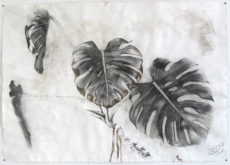 Polvo de grafito y lápiz sobre papel, 72 x 102 cm.