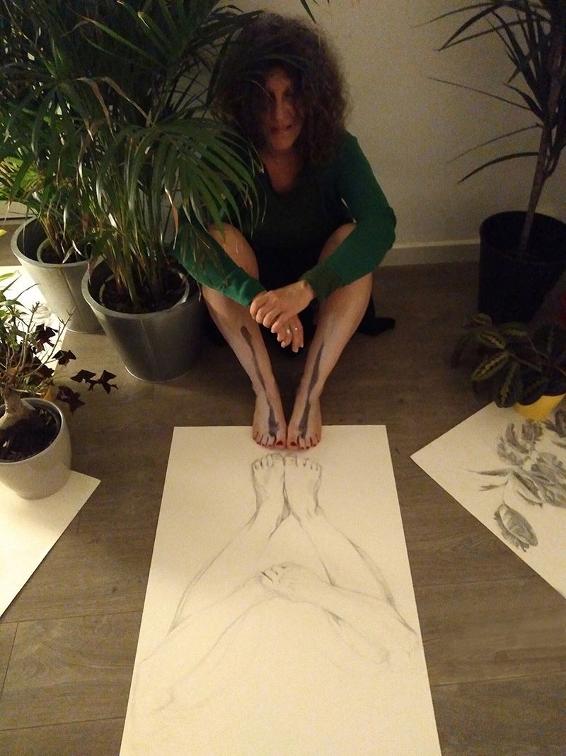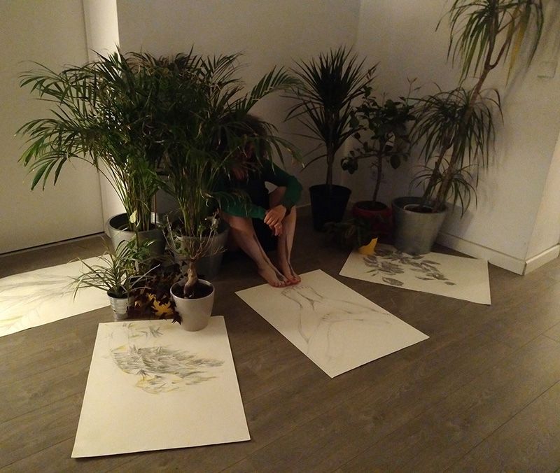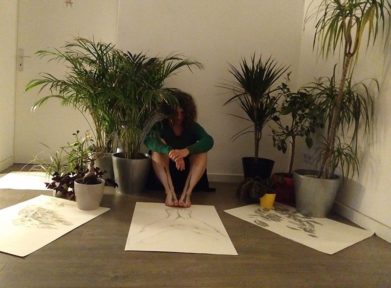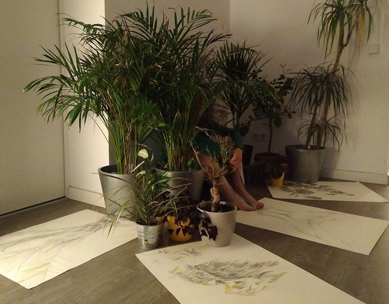 Sentada-protesta – 8 de Marzo. Plantas, dibujos, persona